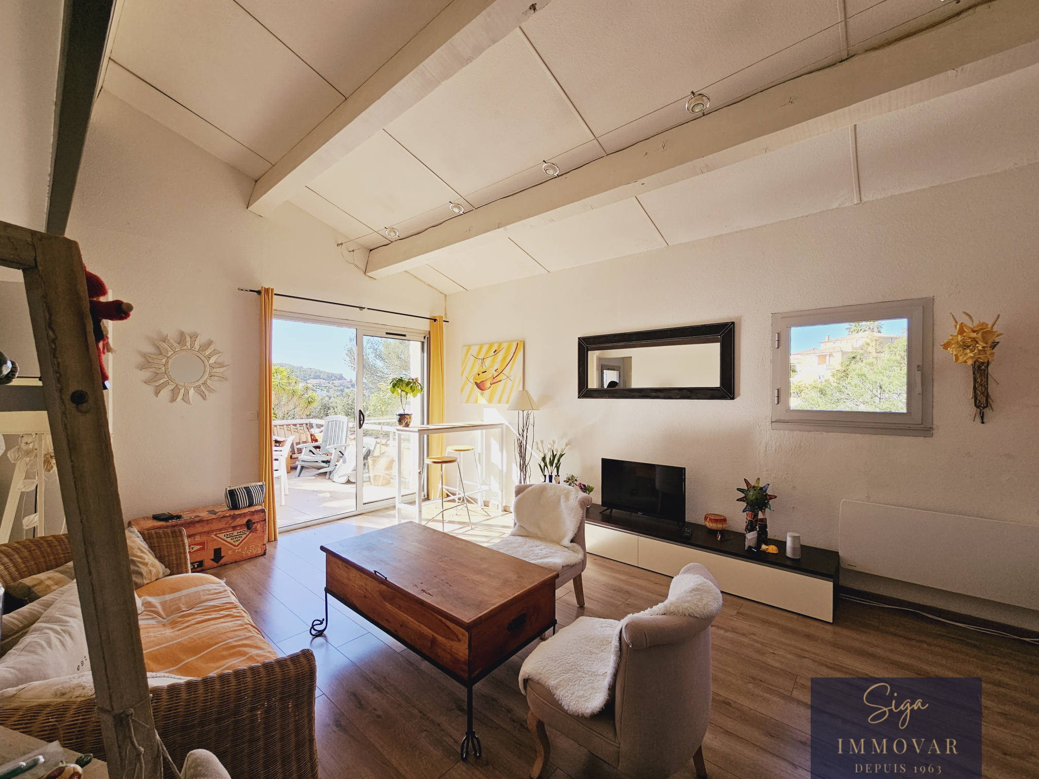 Situé dans un environnement calme et recherché de Bandol, cet appartement de 35 m² offre un cadre de vie agréable entre colline et mer. Vous serez séduit par sa belle terrasse de 15 m² exposée au sud, offrant une vue dégagée sur la colline et un aperçu mer, idéale pour profiter du soleil et des soirées d’été. L’appartement se compose d’une entrée avec coin nuit d’environ 6 m², d’un séjour lumineux avec une double exposition d’environ 19 m² donnant directement sur la terrasse. Une petite cuisine séparée et une salle d’eau avec WC complète ce niveau . À l’étage, une mezzanine aménagée en coin chambre avec placard intégré offre un espace nuit confortable et intimiste. Cet appartement, alliant charme et praticité, est idéal comme pied-à -terre à Bandol ou investissement locatif saisonnier. Résidence avec piscine - Possibilité d'acquerir un garage en supplément . - Quote-part annuelle de charges : Classe énergie : D Prix honoraire agence inclus à la charge du vendeur .Mdt n°1147 Les informations sur les risques auxquels ce bien est exposé sont disponibles sur le site Géorisques.
